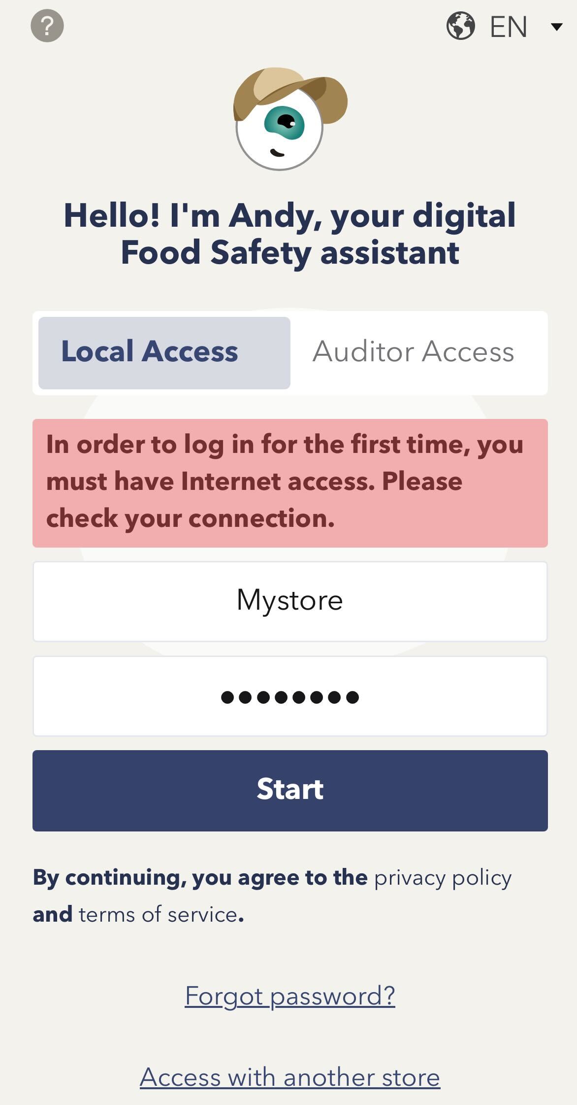 You may also see the following message when trying to access the Andy App: