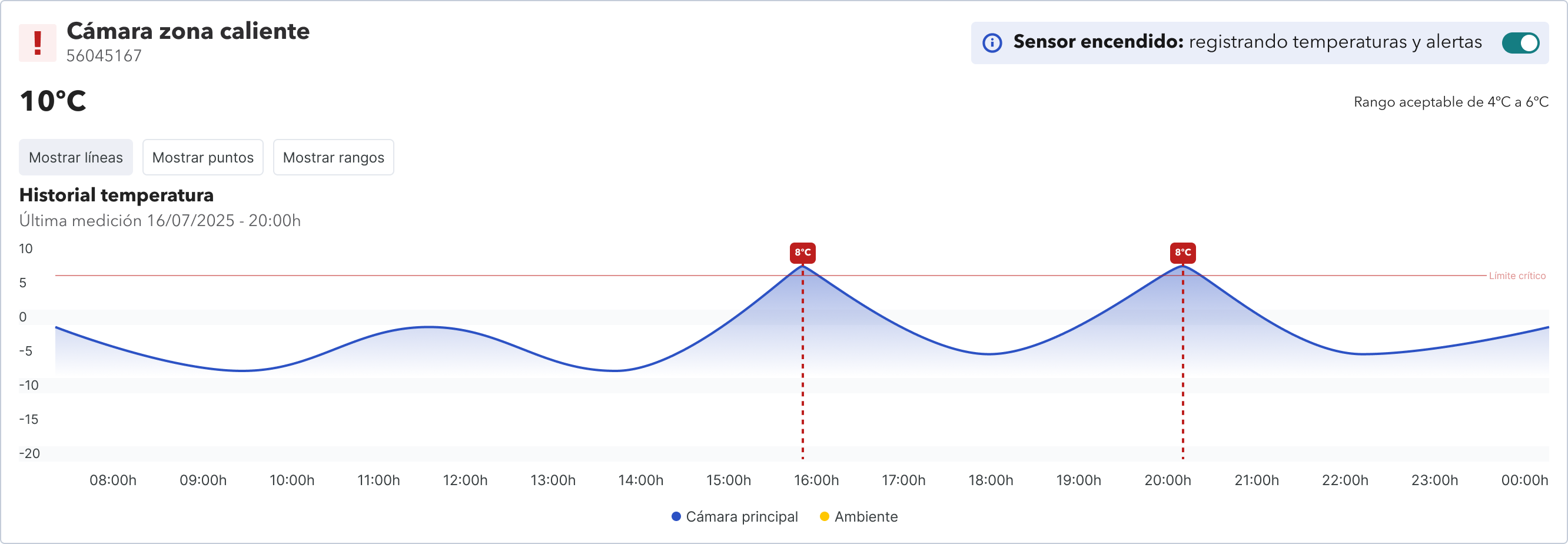 Permite identificar rápidamente sensores que deben ser encendidos nuevamente.