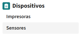 Configuración → Dispositivos → Sensores, orientada a la supervisión y gestión detallada de los dispositivos.