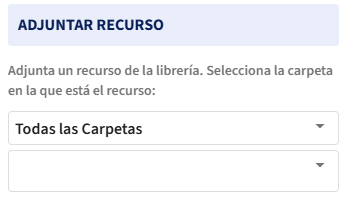Su función principal es la de poder adjuntar recursos de librería. Para poder adjuntarlo, es necesario subirlos primeramente en Librería.