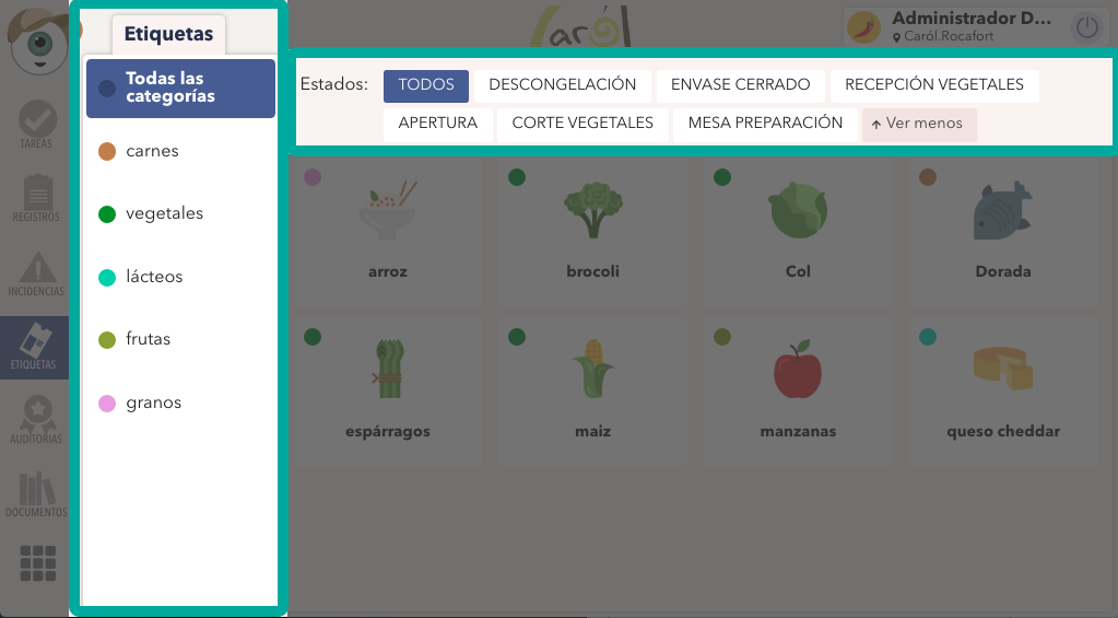 1. En el menú principal, pulsa sobre el icono de Etiquetas.