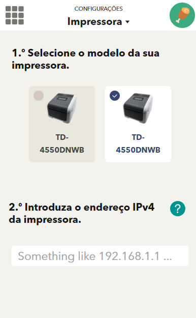 Link Brother TD-4550DNBW impressora com Andy via Bluetooth